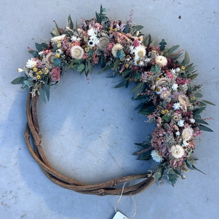 Dried flower wreaths are the perfect natural addition to decorate any space. Wreaths are best kept out of direct sunlight. They will fade in time but their beauty will remain. The base of the wreaths, are created from grapevine cuttings or willow grown here in Alexandra or supple jack vine sourced from the West coast of New Zealand.